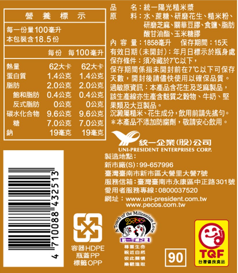統一陽光糙米漿1858ml※實際到貨效期約4天以上
