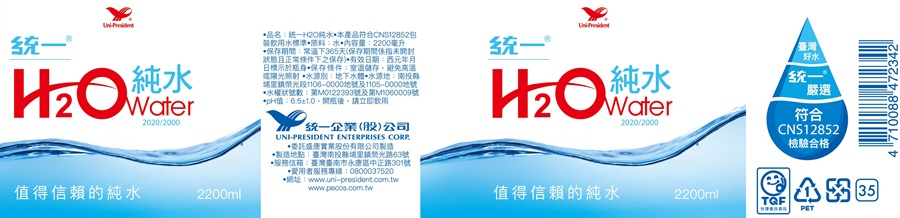 統一H2O純水PET2200ml