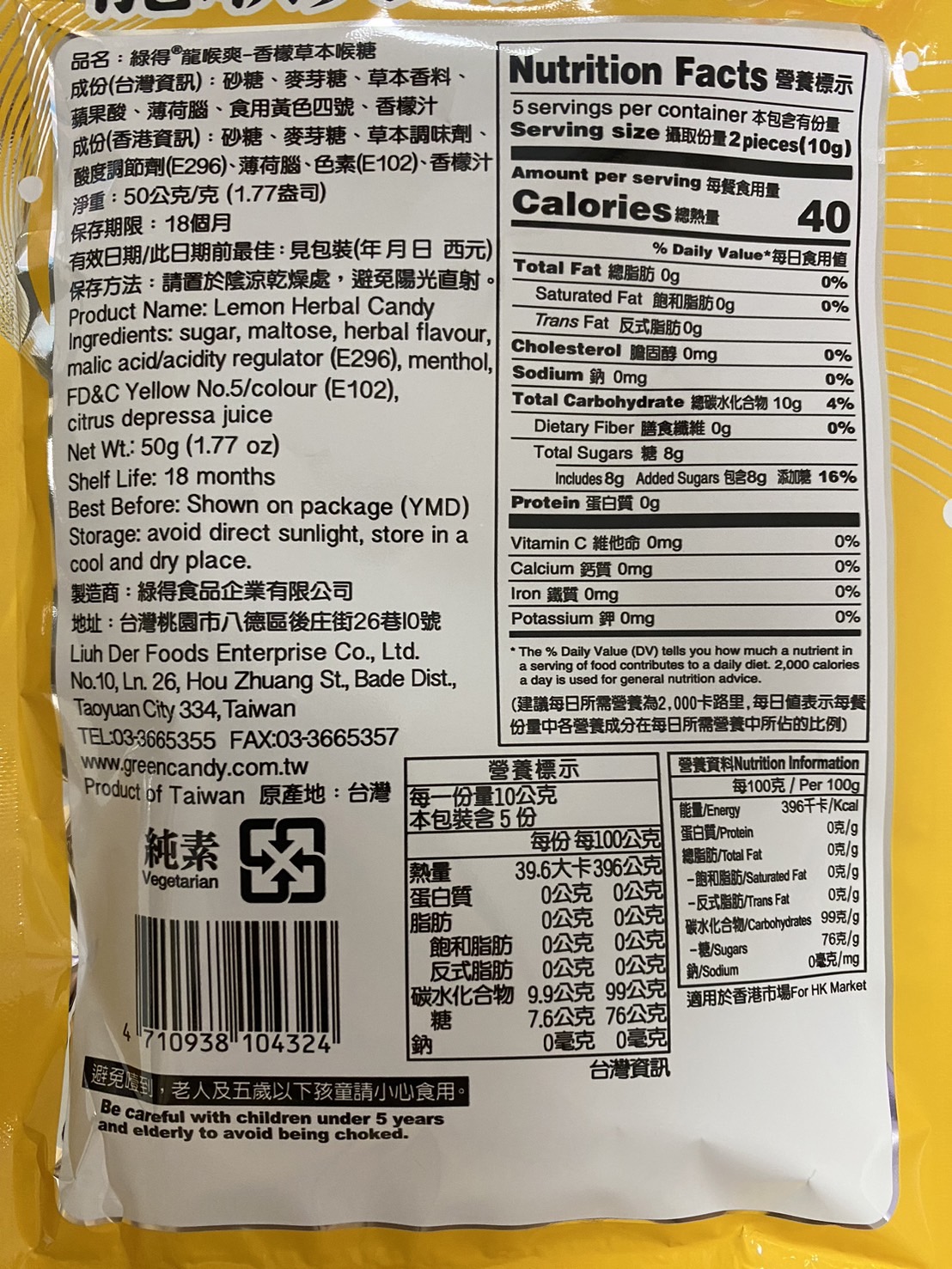 →喉嚨卡卡最對味😝-----------龍喉爽50G(純素)🌿草本系喉糖添加檸檬香氣
