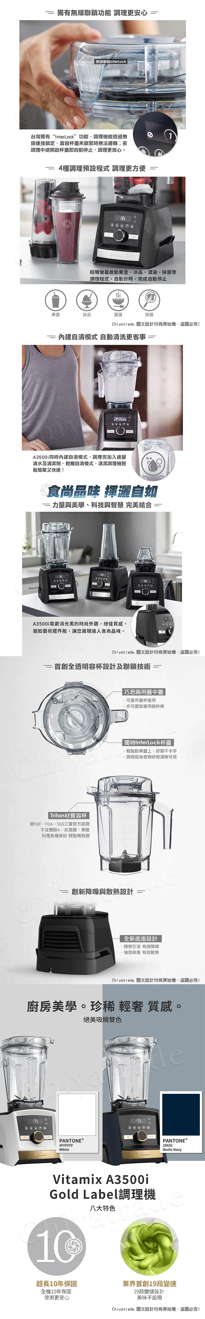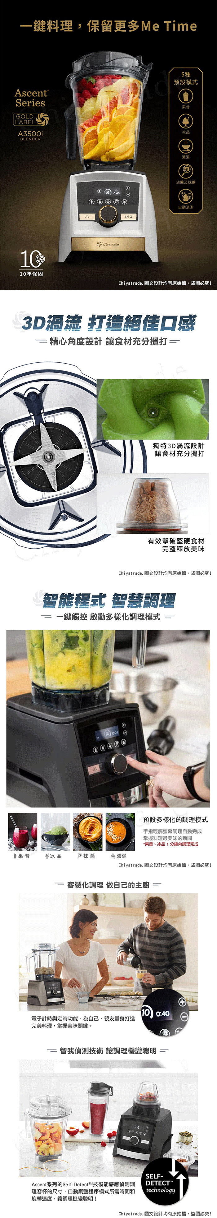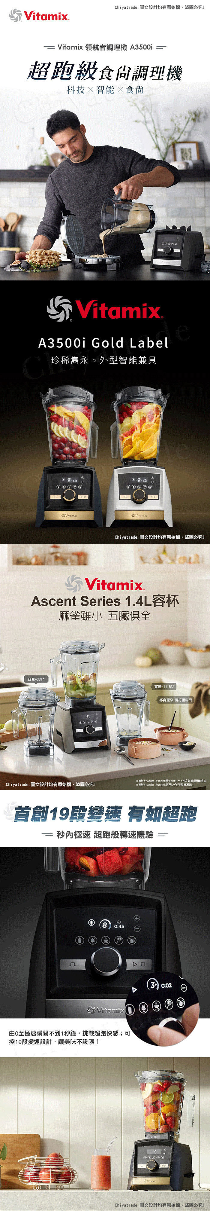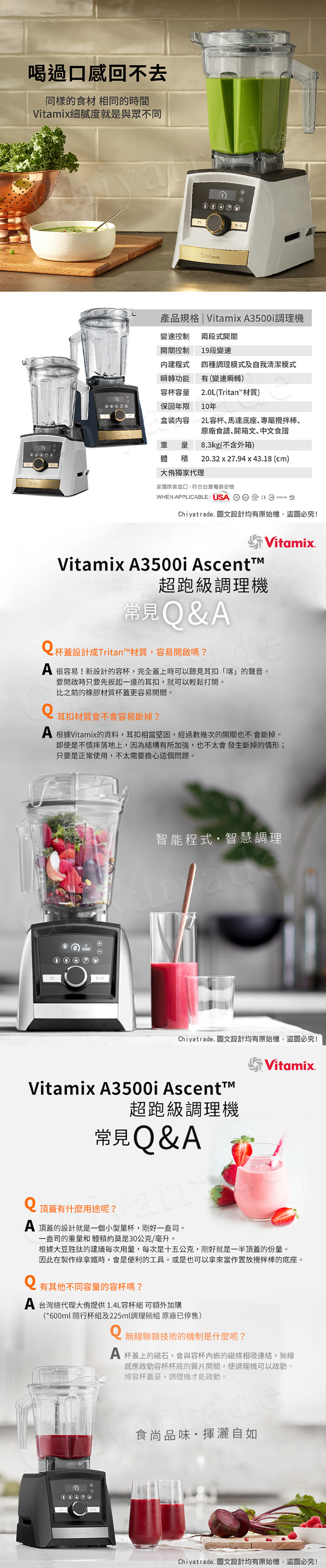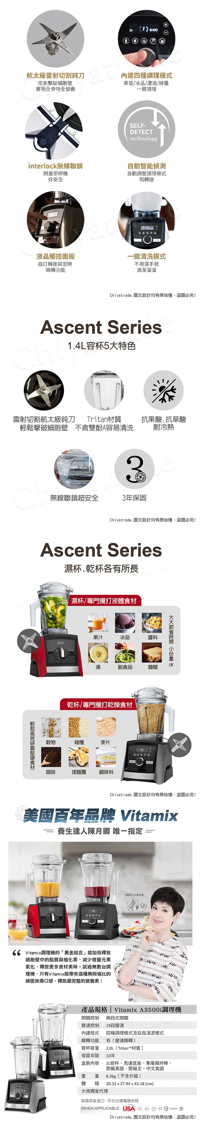 【美國Vitamix】Ascent領航者全食物調理機 智能x果汁機 尊爵級-A3500i+1.4L濕杯 共雙杯組(官方公司貨)陳月卿推薦
