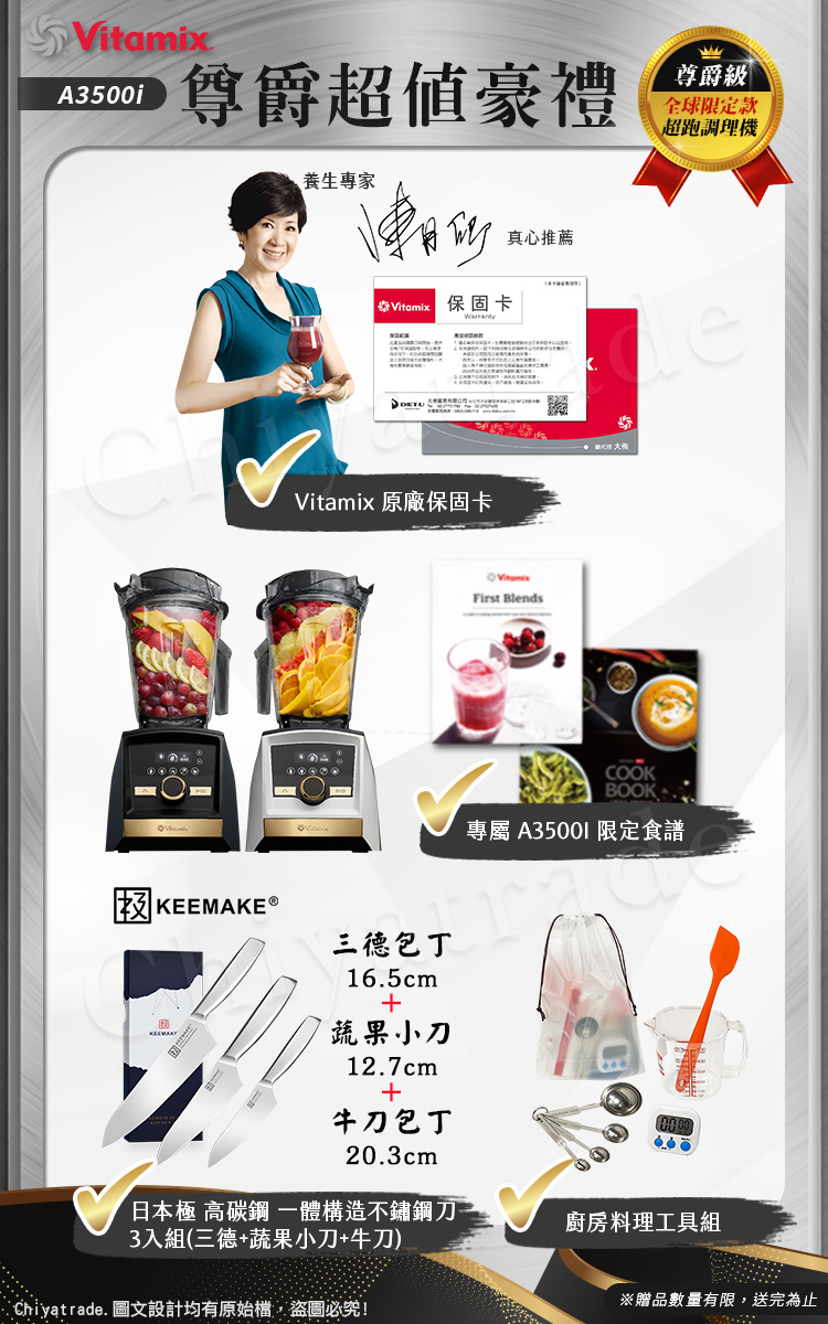【美國Vitamix】A3500i Gold Label 超跑級調理機 全球限定款 智能x果汁機 尊爵級(官方公司貨)-陳月卿推薦