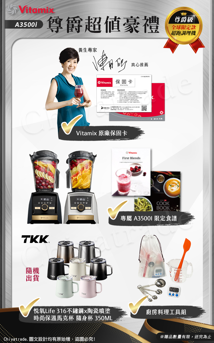 【美國Vitamix】A3500i Gold Label 超跑級調理機 全球限定款 智能x果汁機 尊爵級(官方公司貨)-陳月卿推薦