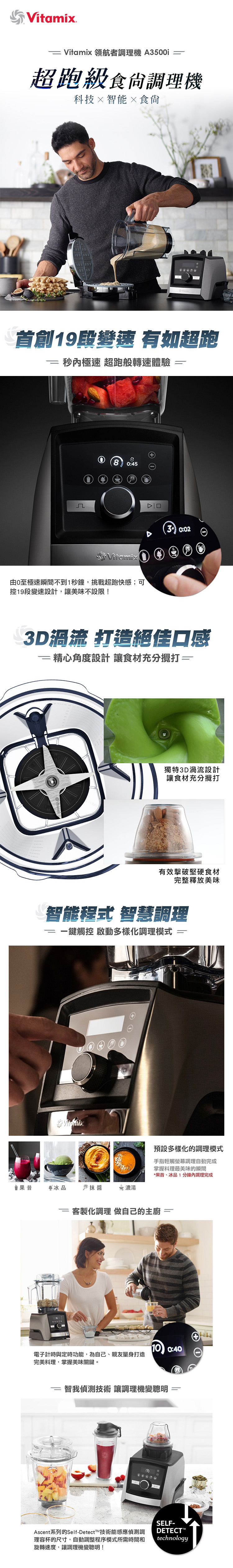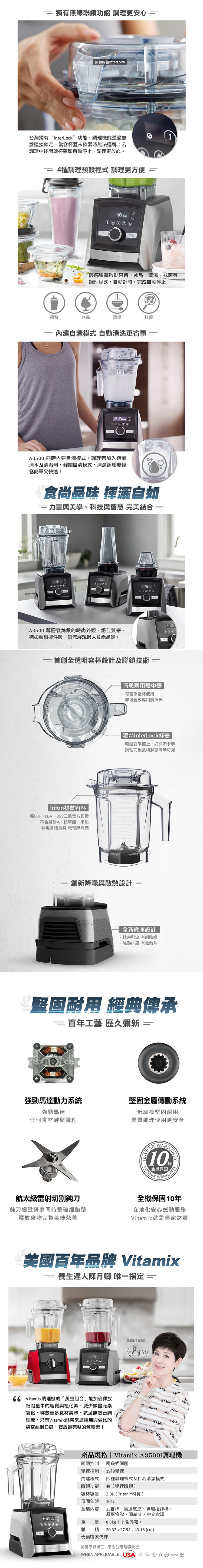 【美國Vitamix】Ascent領航者全食物調理機 智能x果汁機 尊爵級-A3500i-髮絲銀(官方公司貨)-陳月卿推薦