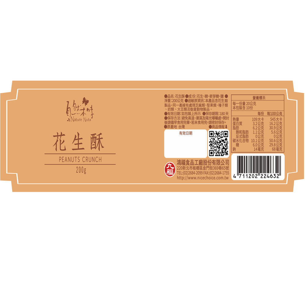 古早味經典 年貨大街 年節送禮 精緻送禮禮盒 年節糖果堅果干貨 自然本味《花生酥》200g [2罐免運組/贈1個紙袋]