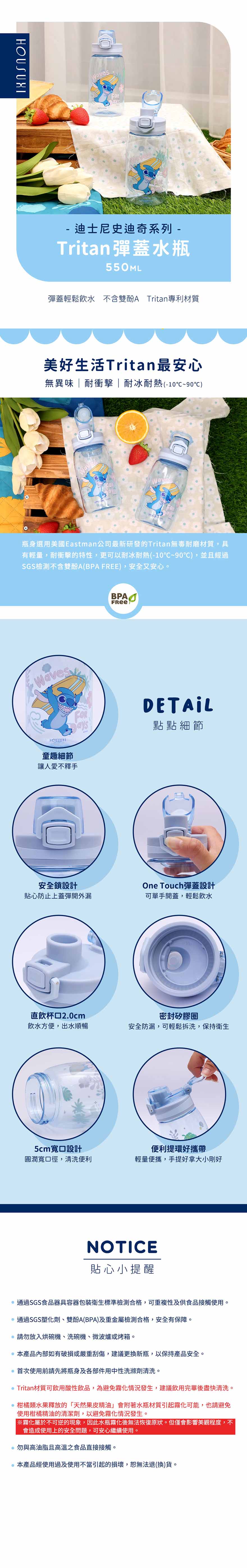 『HOUSUXI‧舒希』迪士尼史迪奇系列-Tritan彈蓋水瓶550ml(A3)