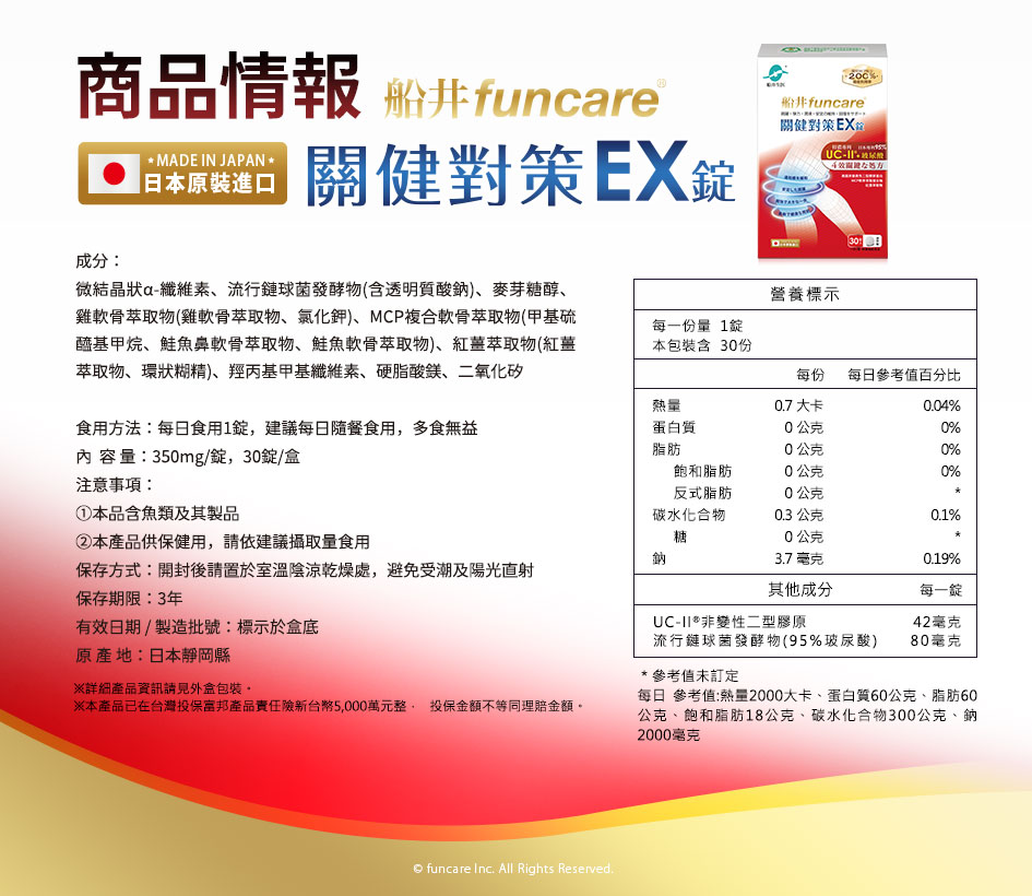 【船井】UC-II關健對策EX錠30顆/盒(日本原裝進口)
