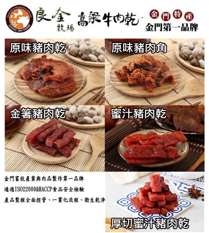 高粱牛肉乾(辣味):精選牛肉、糖、醬油、鹽、辣椒粉、高梁酒、甘草