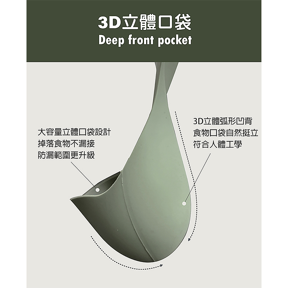 ★ 3D立體口袋:大容量立體口袋設計,掉落食物不漏接,防漏範圍更升級。3D立體弧形凹背,食物口袋自然挺立,符合人體工學。