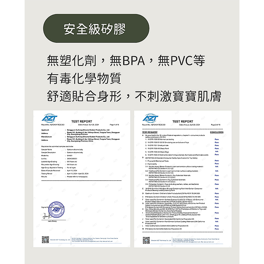 ★ 安全級矽膠:無塑化劑,無BPA,無PVC等,有毒化學物質,舒適貼合身形,不刺激寶寶肌膚。""