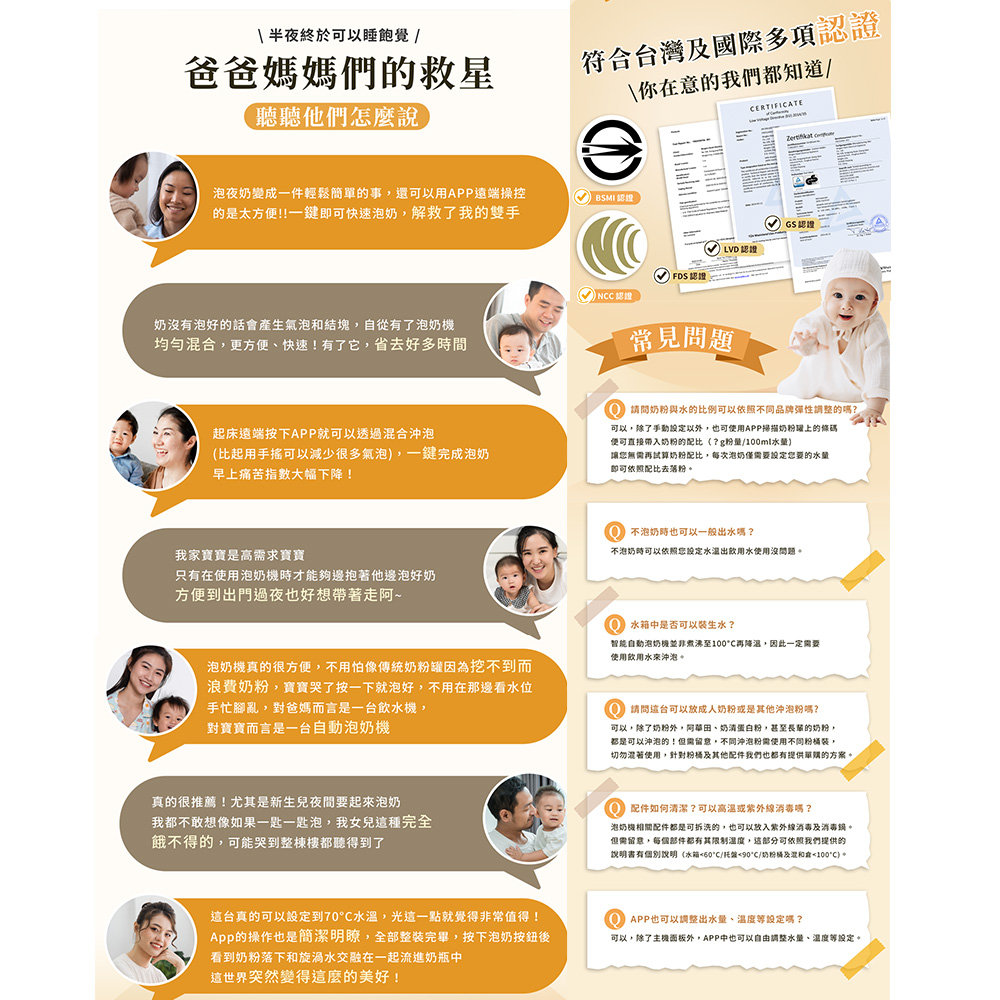 ★ 一鍵代勞:同時解鎖熱水控溫、奶粉控量、搖奶融合等泡奶任務。