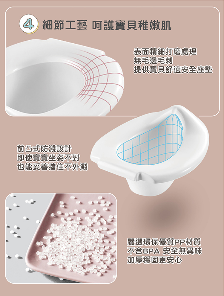 模仿真實馬桶設計,滿足寶貝學習好奇心,人體工學設計舒適度滿分。