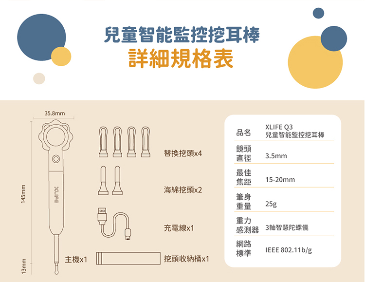 芽比兔-XLife 兒童智能監控挖耳棒擁有3.5mm 微型攝影鏡頭 + 1080p 高解析度,