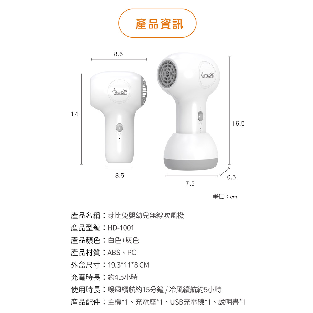◎品牌:芽比兔 ◎規格: 嬰幼兒無線吹風機 ◎逛逛專館: 啾愛你創意有限公司