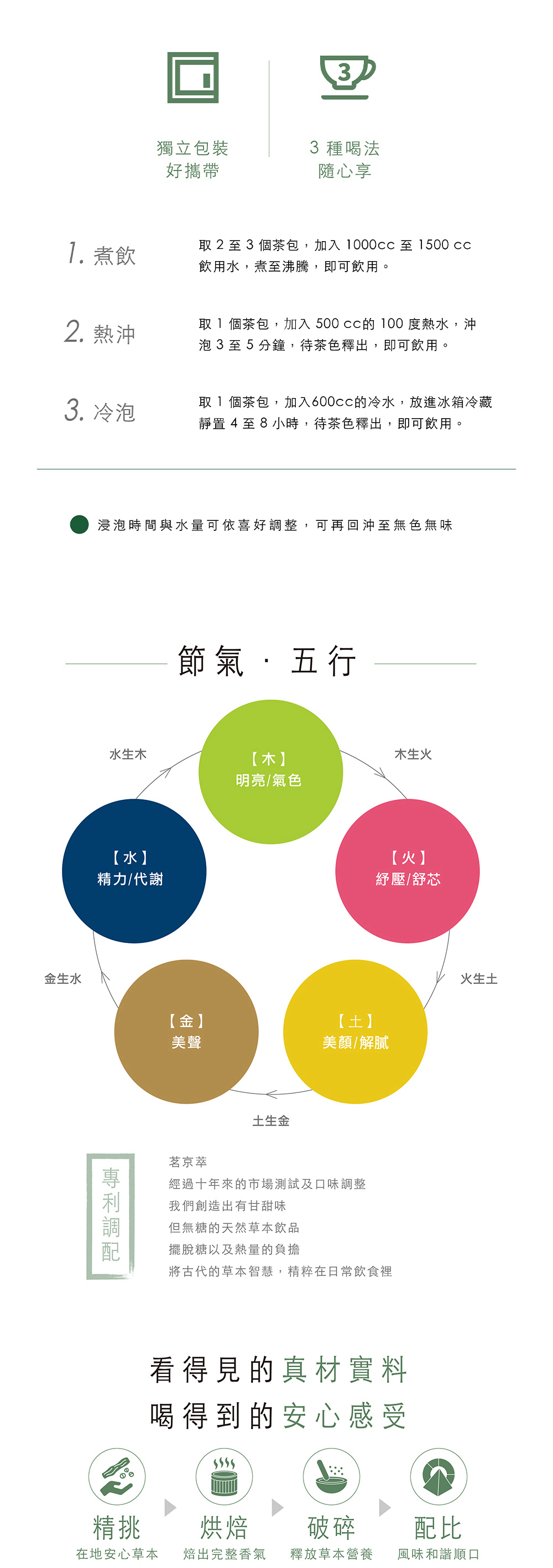 ✅熱沖 ✅冷泡 ✅回沖【一天一杯 好喝零負擔】禮盒內含【木/火/土/金/水】九款五行茶包【木】明亮百草甘5g x 2入、【木】氣色菊花香6g x 2入