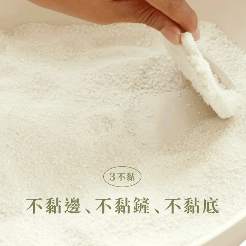 A|不會。純木薯成分具備優異凝結力,結團紮實不易黏底,清理更輕鬆。