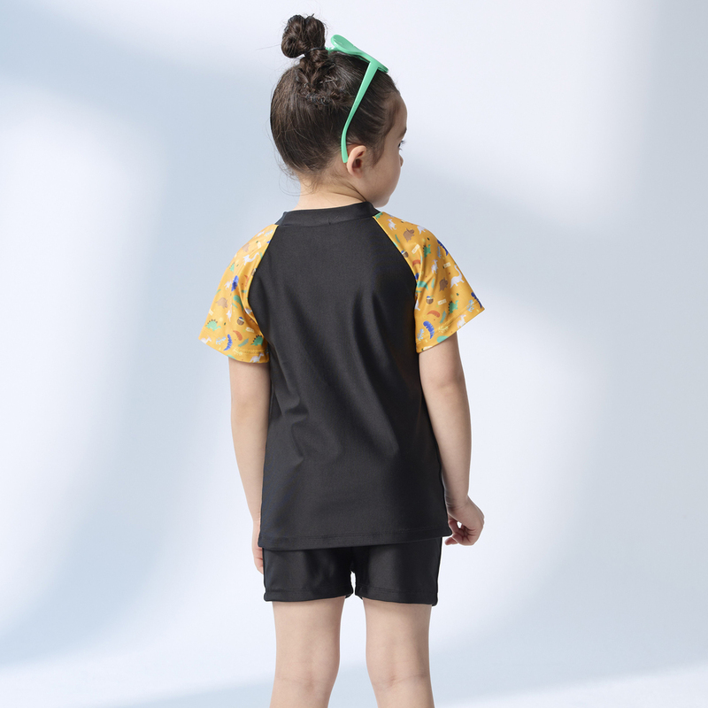 莫妮娜 台灣製 兒童 短袖二件式防曬泳裝 恐龍 男女童皆適穿