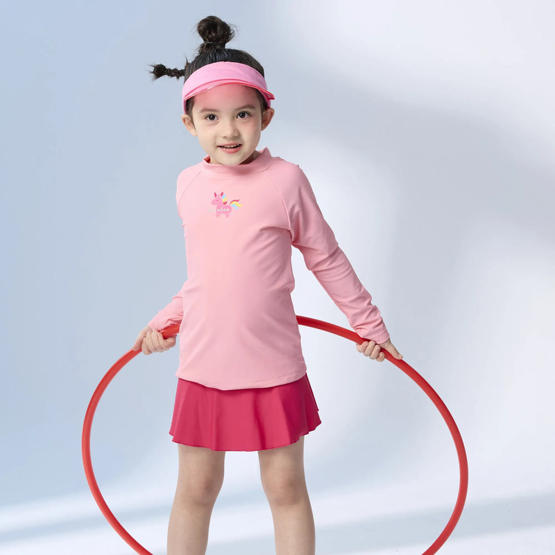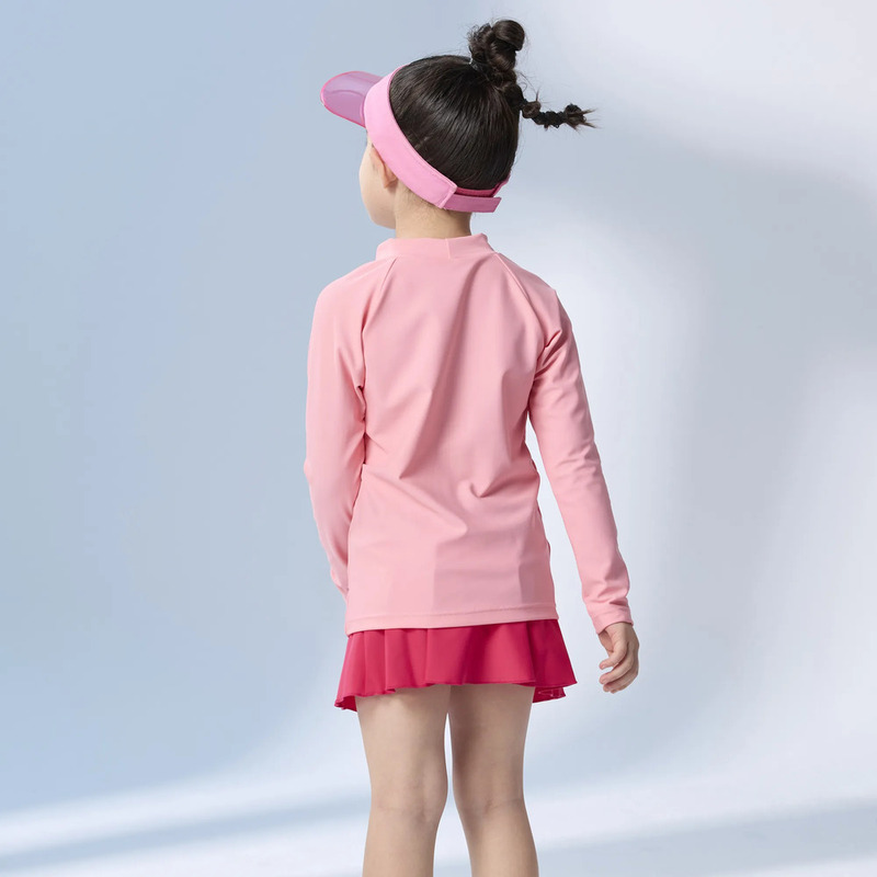 莫妮娜 台灣製 兒童長袖抗UV防曬機能上衣 粉橘 男女童皆適穿