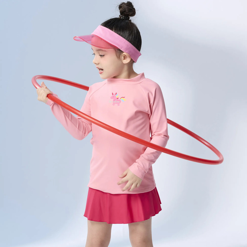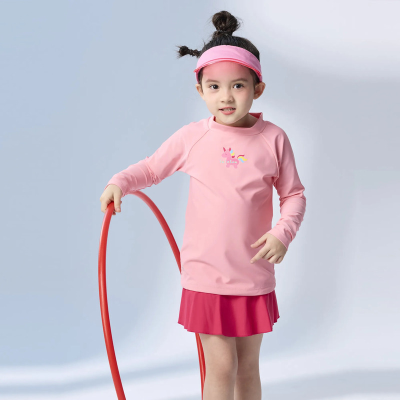 莫妮娜 台灣製 兒童長袖抗UV防曬機能上衣 粉橘 男女童皆適穿