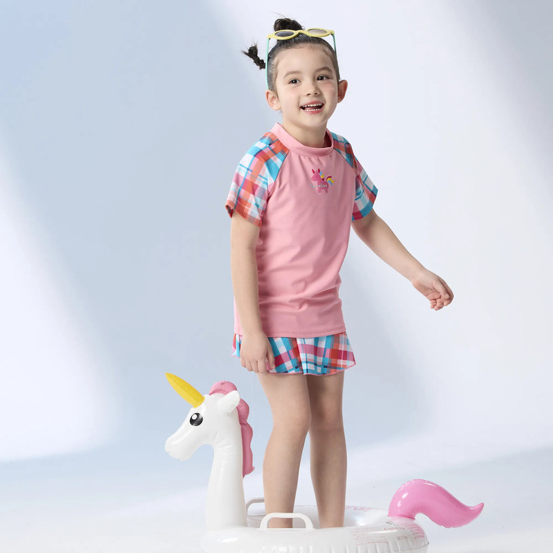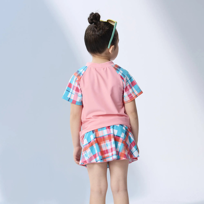 莫妮娜 台灣製 兒童格子短袖 二件式 泳裝