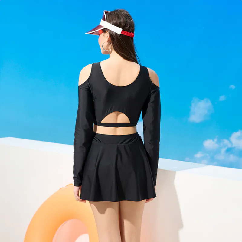 莫妮娜 台灣製 長袖防曬二件式 顯瘦A字裙 泳裝