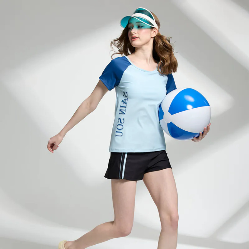 莫妮娜 台灣製 清爽藍調短袖二件式泳裝