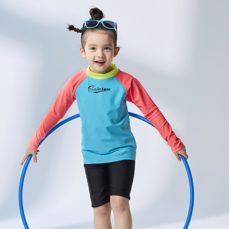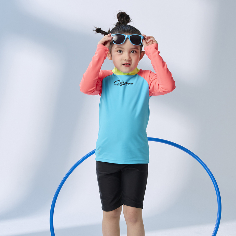 台灣製 長袖抗UV二件式 極光撞色泳裝 男女童皆適穿