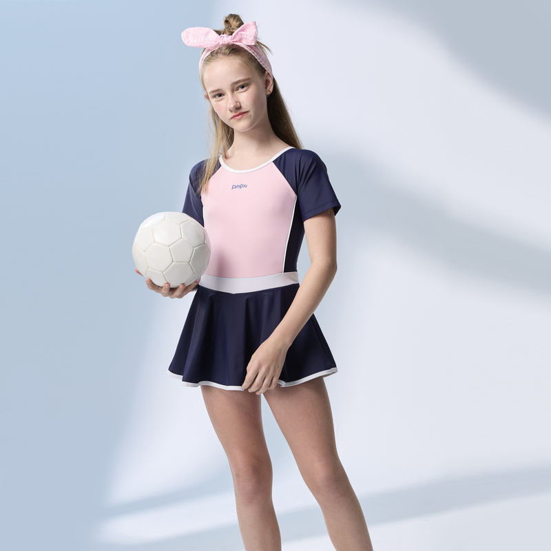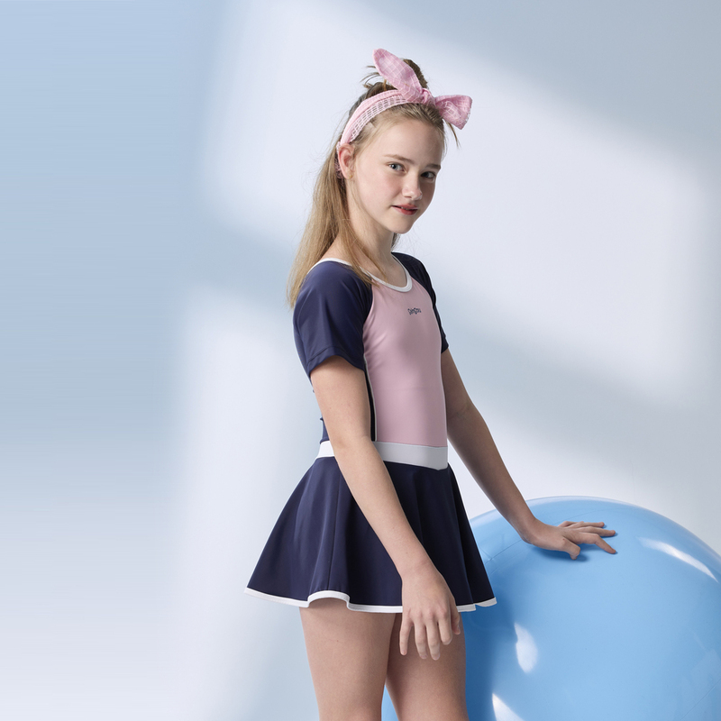 莫妮娜 台灣製 少女短袖櫻花粉俏麗連身裙 泳裝