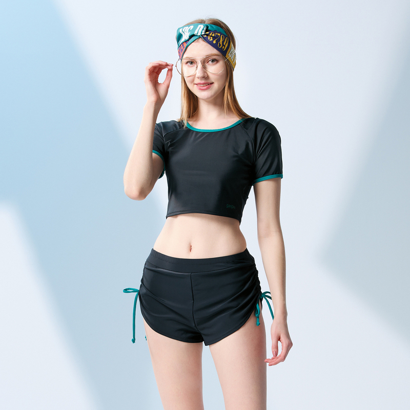 台灣製 少女墨綠修身短袖二件式 泳裝 限量發售
