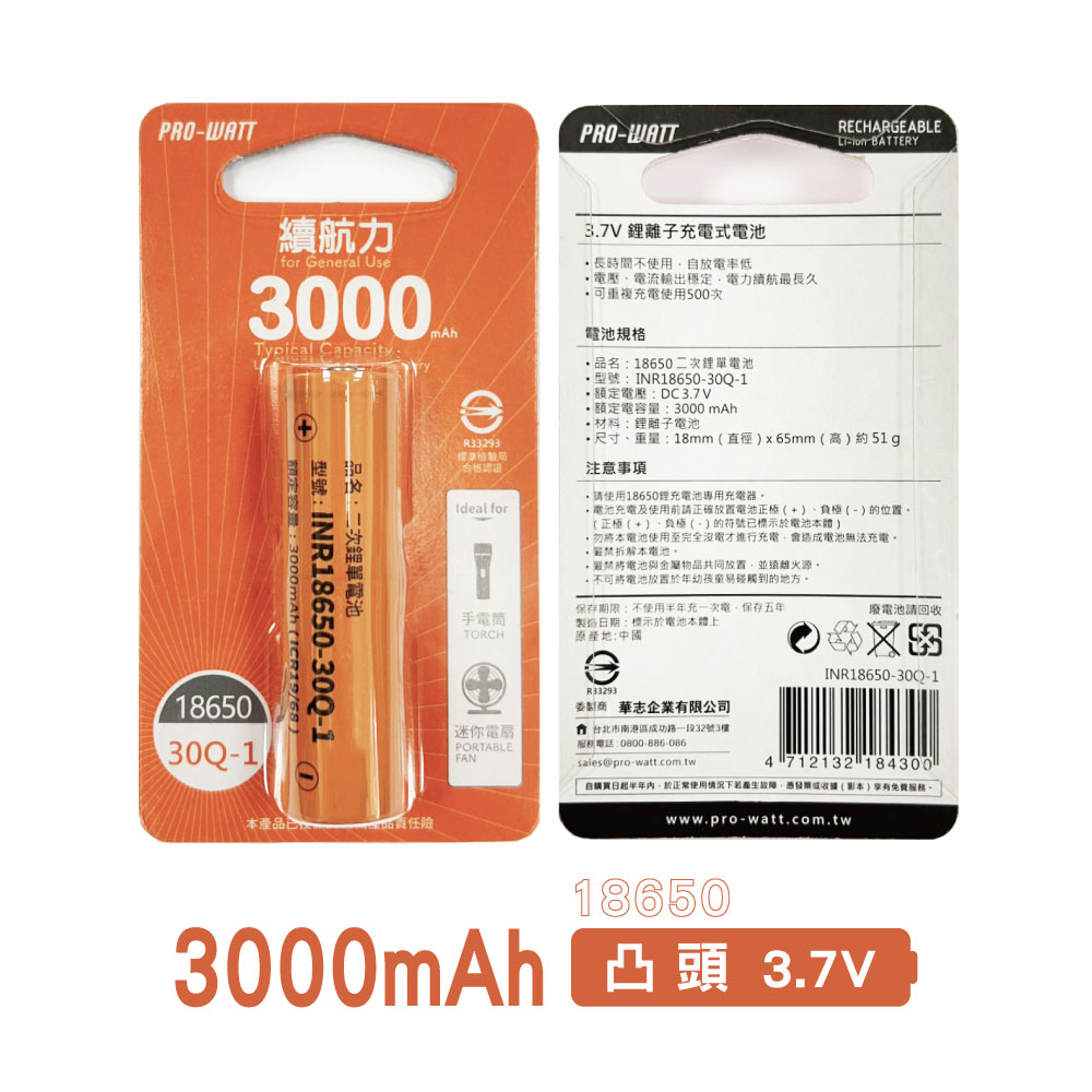 [寶旺旺] 華志PRO-WATT 高容量18650高頭 充電式 鋰電池