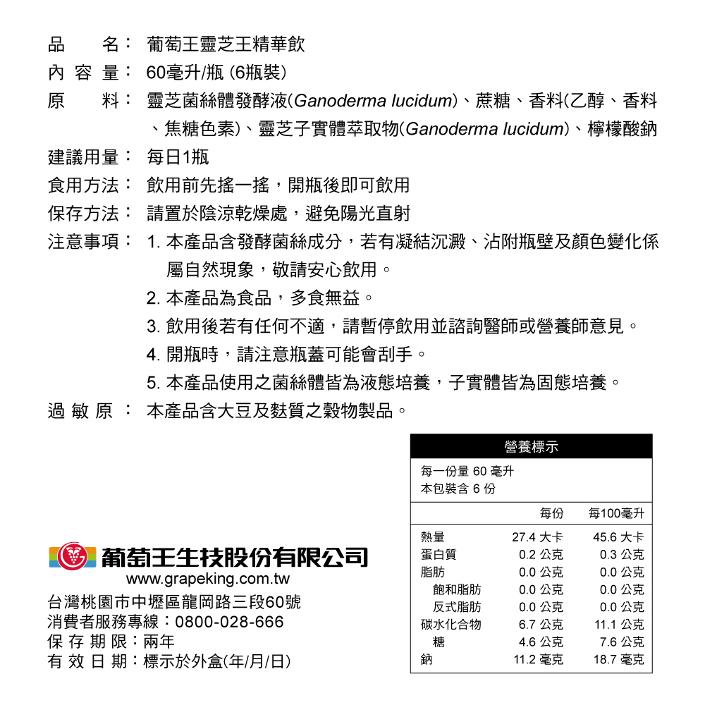 葡萄王靈芝王精華飲60MLx6瓶禮盒