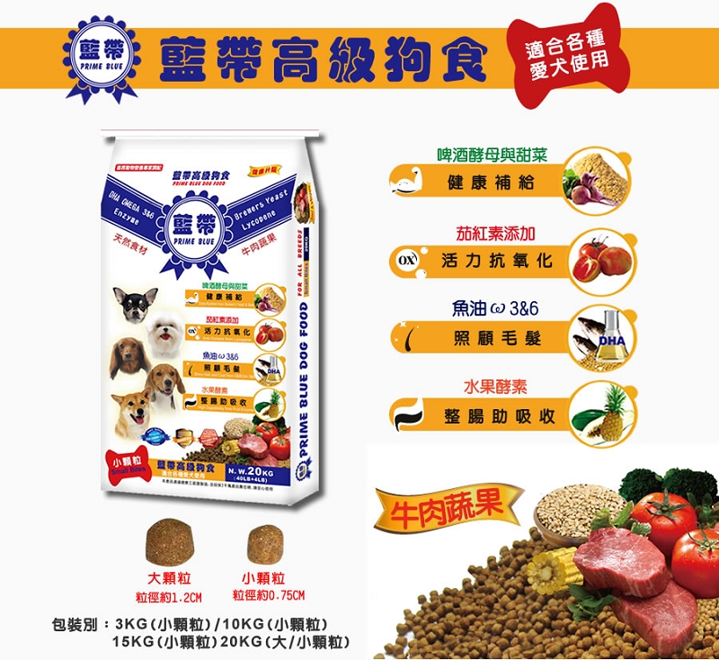 [逸承創意] 藍帶高級 成犬 15kg 大顆粒 牛肉蔬果