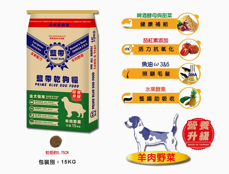[逸承創意] 藍帶高級 成犬 15kg 羊肉蔬果