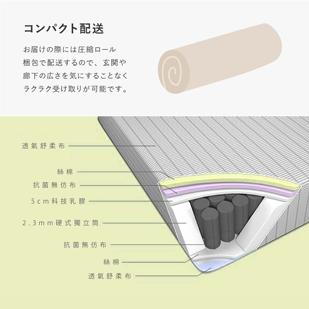 台灣製【藤原傢俬】藤原豆腐獨立筒捲包床/5cm科技乳膠/表布防螨抗菌-軟硬適中