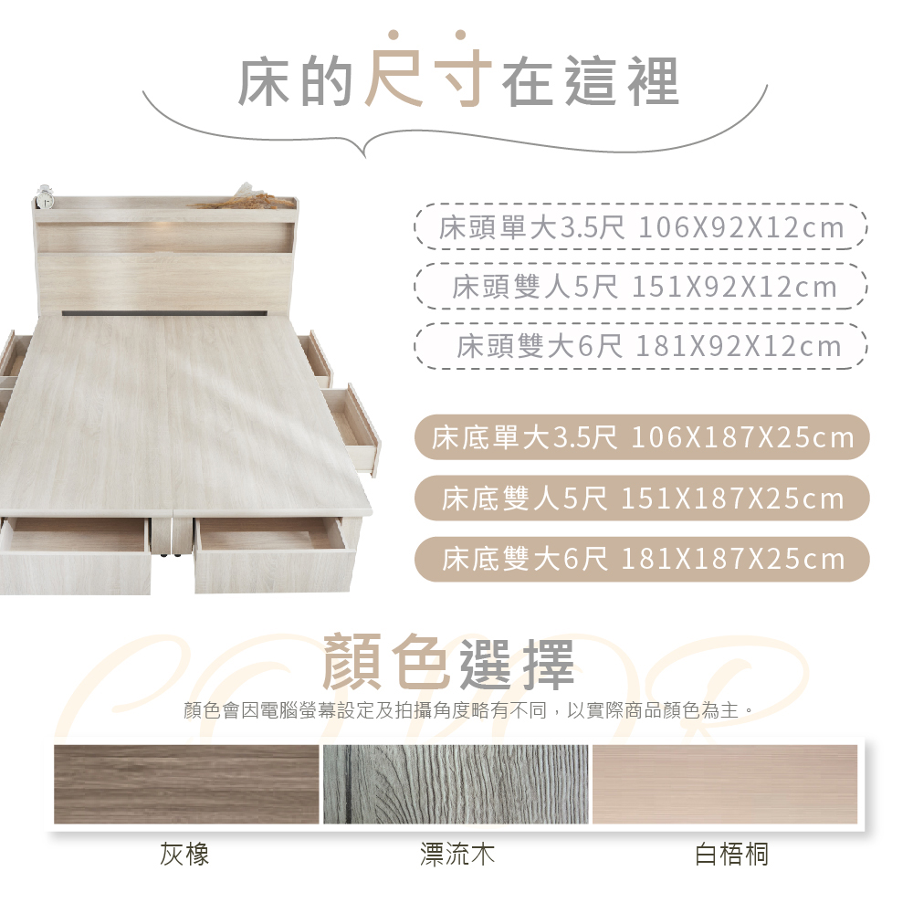 台灣製【藤原傢俬】遙控/觸控燈附插座木芯板新6抽二件式床組(床頭+新6抽床架/床底)