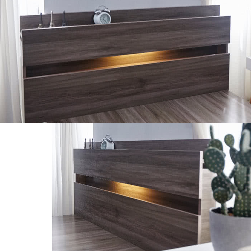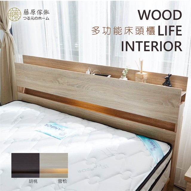 台灣製【藤原傢俬】民宿風加高收納床頭附燈 (不含床架/床墊)