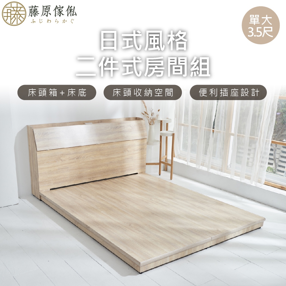 台灣製【藤原傢俬】日式風格二件式床組(床頭箱+低床底/床架)