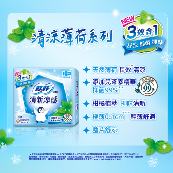 蘇菲清新涼感衛生棉薄荷清涼25cm13片