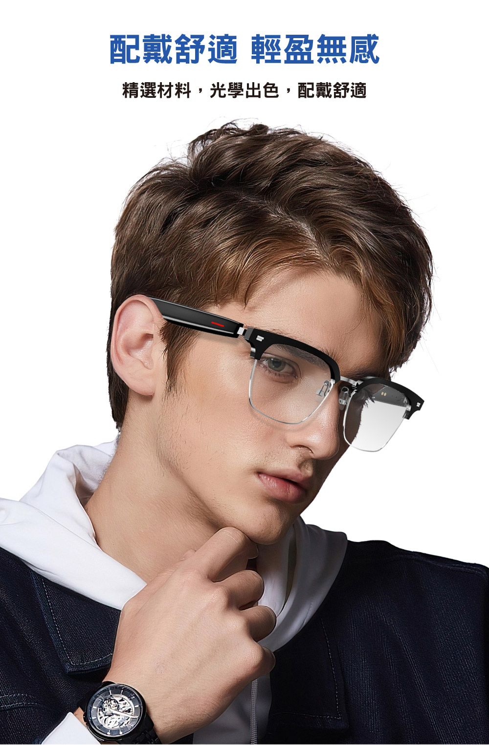 【產品特色】・智能翻譯,支持語音助手・遙控拍照,智慧操控・藍牙5.0穩定連接・長效續航與磁吸充電・IP65生活防水等級