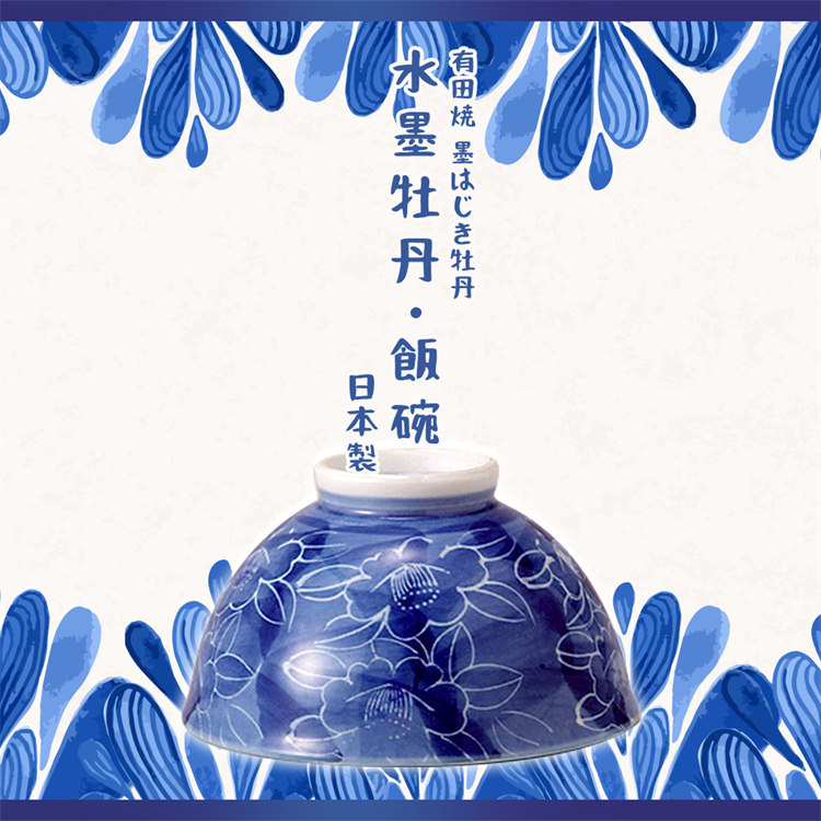 【毓秀堂】西海陶器 水墨牡丹 飯碗