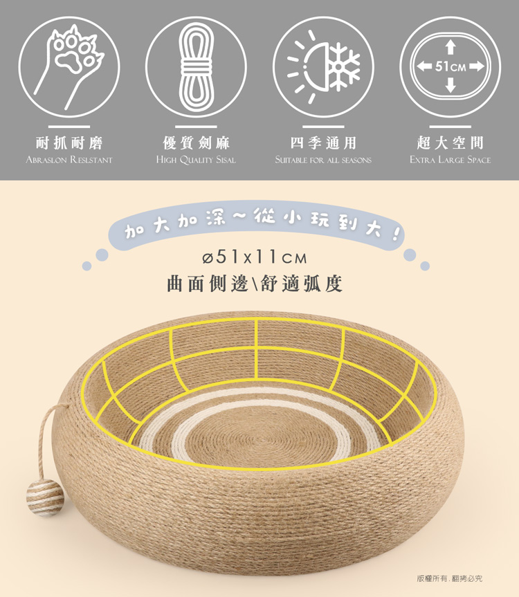 【貓本屋】劍麻深睡大空間貓抓板貓窩-OO-P-SB36-圓形