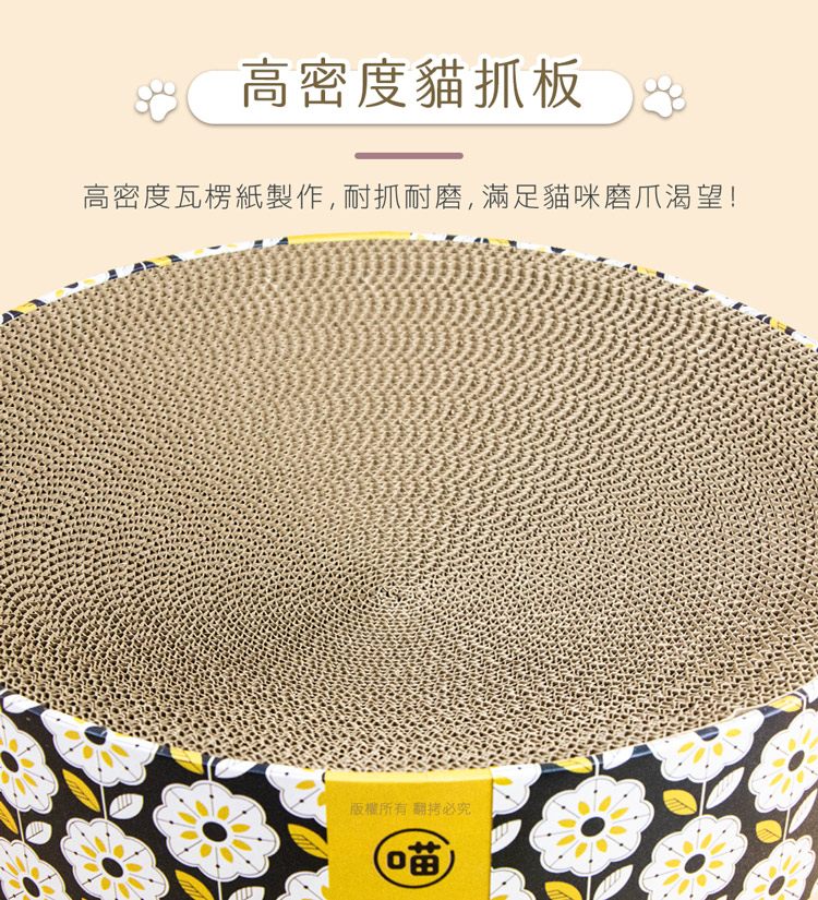 貓本屋 下凹式圓形貓抓板貓窩(41x41x10cm)★貓床/貓抓板/磨爪★ --休息貓窩結合磨爪抓板,一物多用途----環保高密度瓦楞紙板製造,善待地球-- 高密度瓦楞紙板製造,環保可回收,不需組裝取出即用將『休息貓窩』與『玩樂磨爪貓抓板』完美結合!立刻讓貓咪擁有一個可玩樂/磨爪/休息的地方! 採用下凹式工藝,完全貼合貓咪身形,讓貓咪舒適蜷縮底部全包覆封閉式設計,抓板屑不會掉滿地!
