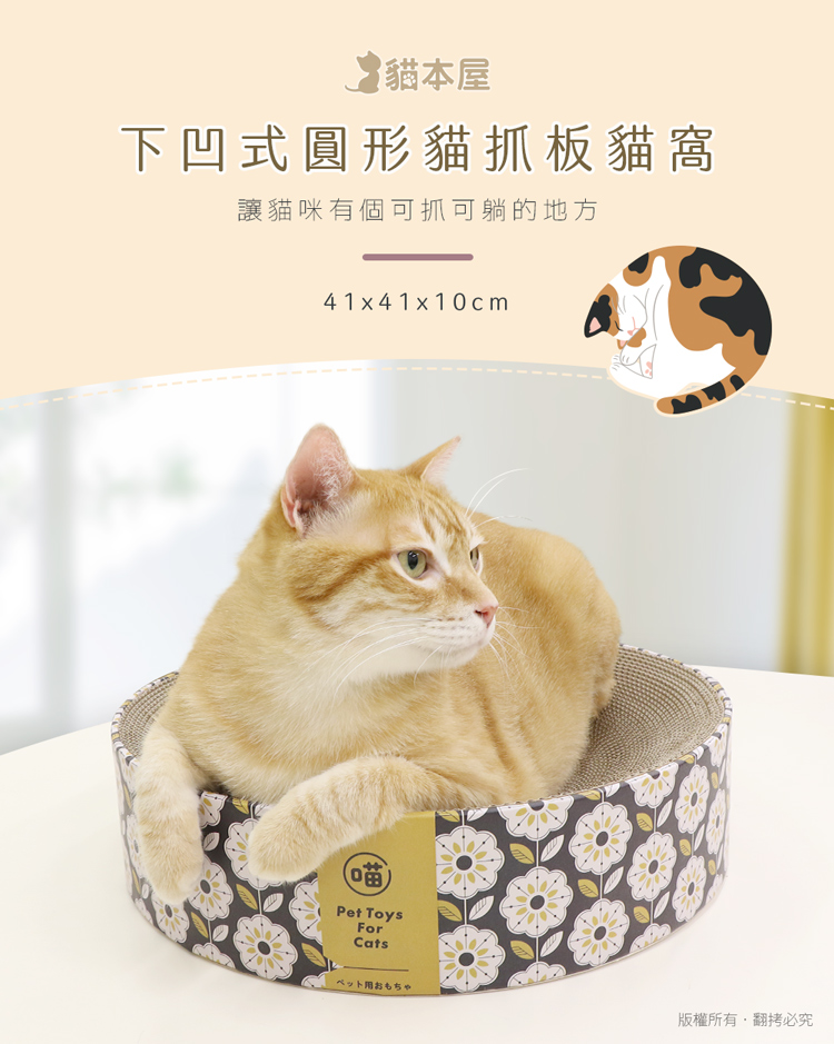 【貓本屋】下凹式圓形貓抓板貓窩-OO-P-SB34-C-貓咪