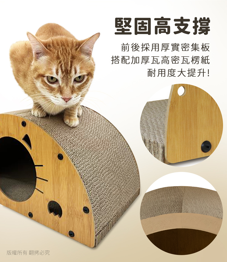 --磨爪+休息,隱蔽空間滿滿安全感----加厚高密度瓦楞紙+厚實密集板,支撐性強--