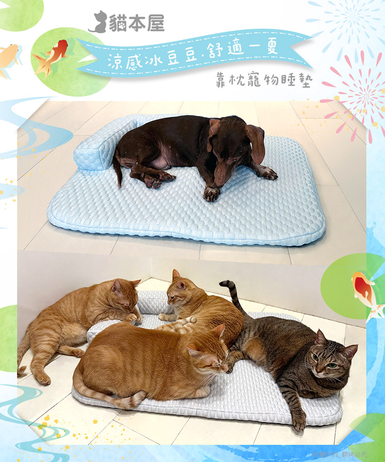 貓本屋 冰豆豆涼感 可拆洗靠枕寵物睡墊-L號-OO-P-SN08L-B-粉藍
