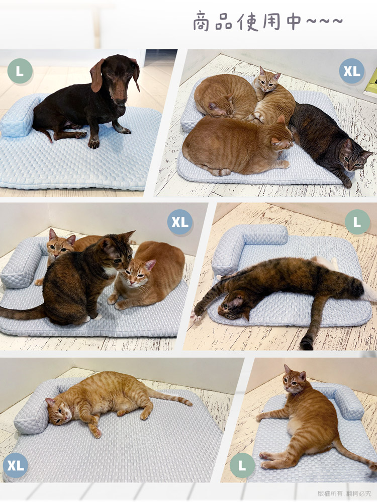 貓本屋 冰豆豆涼感 可拆洗靠枕寵物睡墊(L號/65x50cm)★貓狗適用★ --溫和迅速降溫,涼爽舒適,告別黏膩!-- 炎炎夏日,擔心冷氣費貴、更怕獨自留在家中的毛孩們太熱!尤其毛小孩的體溫又比人略高,除了通風的環境、提供充足的水份之外還能提供什麼避暑良方呢? 【冰豆豆涼感 可拆洗靠枕寵物睡墊】,採用冰豆豆涼感冰絲面料,皮膚接觸這種面料,會感到冰涼滑順,夏天不再擔心毛小孩太熱,不用吹冷氣也可以涼涼的!絕對是今年夏天的不二選擇! 底部海綿墊可拆出,方便清洗易打理!L型靠枕內部填充高回彈的PP棉,如雲朵般蓬鬆柔軟,舒爽靠著睡,可放置於籠子、推車、地板、沙發上…等,趕快使用降溫墊,讓毛小孩擁有一個涼爽的休憩環境吧! ※欲清理時,請先將底部的海綿墊取出,使用溫水手洗, 並搭配中性潔劑,清洗完畢後請放至通風處晾乾即可!※請避免使用尖銳物割刺、或是寵物啃咬,以免造成破損。※若沾染髒污時,請立即使用濕布擦拭,避免長時間滲透!※本產品不可漂白、不可熨燙、不可烘乾! 注意事項: .本商品為接觸型商品,為避免傳染性疾病(如:跳蚤/壁蝨/疥癬…等) 一經開封或試用過,恕不受理更換事宜。.本產品僅供寵物使用,請勿做其他用途。.若於溫度35℃以上的環境使用,可搭配電扇或空調,可提高使用效果。.收納存放時,請放置於陰涼乾燥處,請避免靠近火源/高溫/陽光直射。.欲清理時,可直接水洗,並搭配中性潔劑,清洗完畢時直接陰乾。.請避免使用尖銳物割刺、或是寵物啃咬,以免造成布面破損。.商品圖檔顏色因電腦螢幕設定差異會略有不同,以實際商品顏色為準。.購買前仔細詳閱商品規格尺寸,慎重購買,以免造成日後買賣糾紛。.所有的規格與重量皆採手工測量,誤差±5%屬正常範圍。 轉載敬告: 鈞嵐(立嵐)之商品圖文、影片或商標等,皆屬鈞嵐(立嵐)版權所有, 若未經同意即任意轉載刊登者,我司將進行相關智慧財產著作權與 商標權及商業法的追訴權利。 商品規格: .型 號:OO-P-SN08L.品 名:貓本屋 冰豆豆涼感 可拆洗靠枕寵物睡墊(L號).款 式:粉藍/淺灰.尺 寸:約 65 x 50 x 2.4 cm / 靠枕厚 8 cm.重 量:約 534 g.材 質:涼感布、海綿、PP棉、防滑顆粒.包裝方式:袋裝.包裝內含:冰豆豆涼感寵物睡墊 x1.商品保固:僅限新品瑕疪更可換商品.產 地:中國大陸
