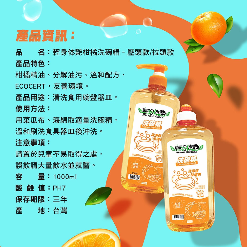 【輕身体艷】柑橘洗碗精-拉頭 1000ml