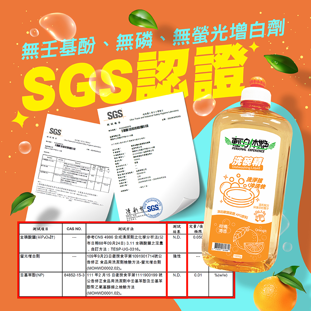 主要成分:純水、椰子油醇聚醚硫酸酯鈉、棕櫚油醇聚醚硫酸酯鈉鹽、葡萄糖苷(APG)、冷壓柑橘油。