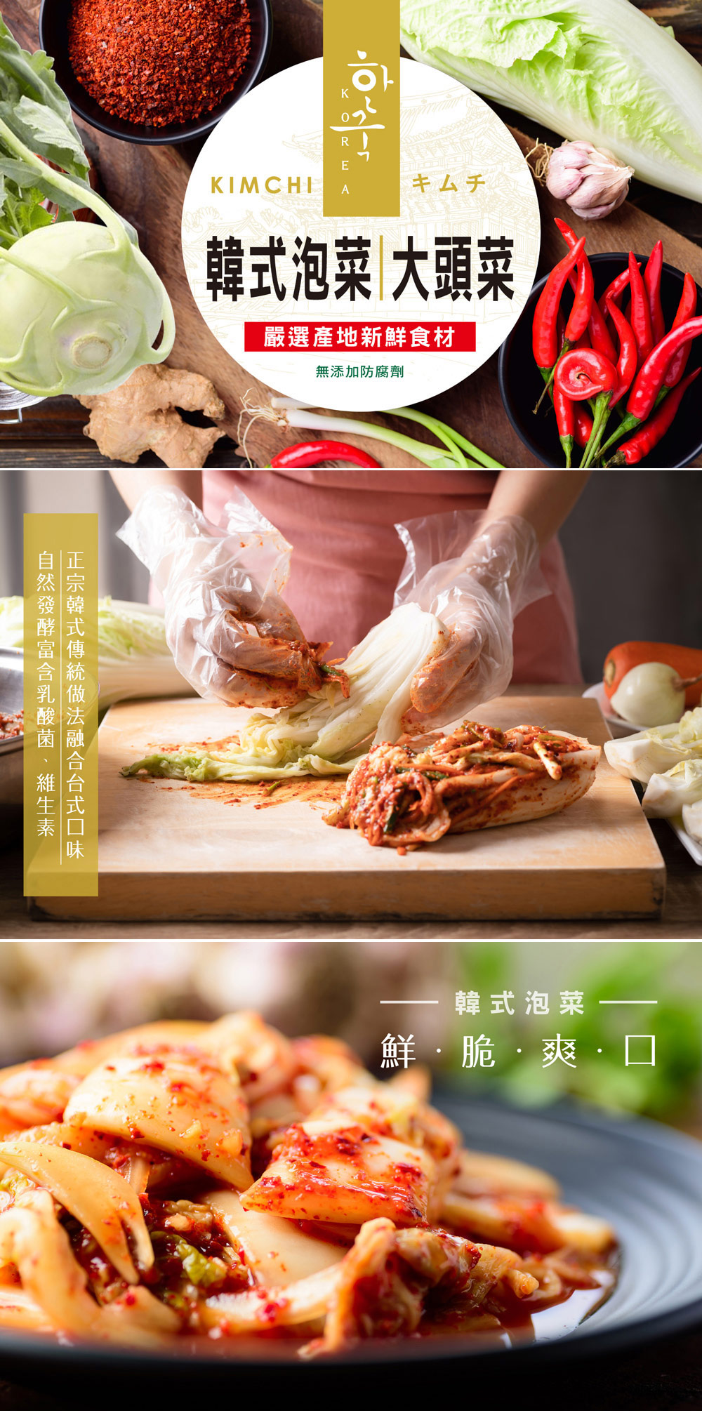 嚴選新鮮大白菜,結合道地韓式醬料自然發酵酸香微辣,清爽脆口,每一口都喚醒味蕾