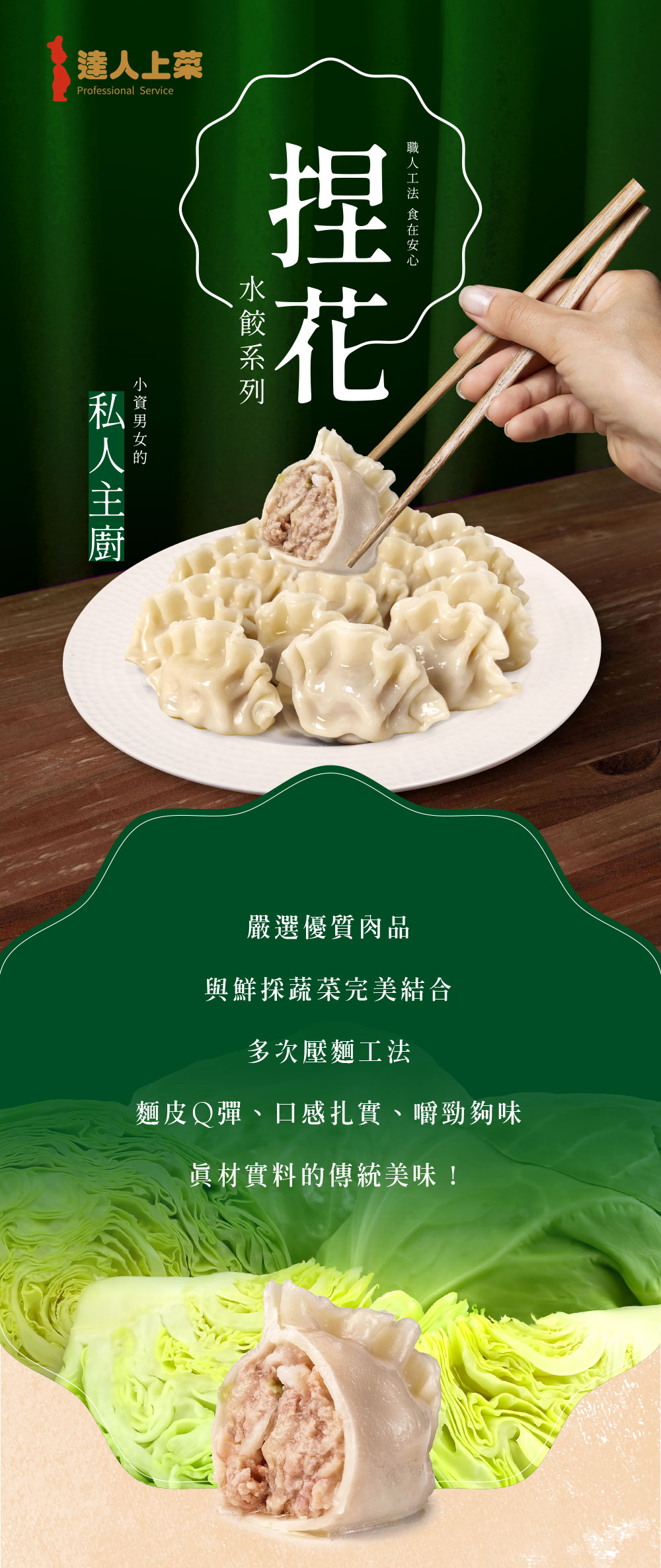【達人上菜】豬肉高麗菜捏花水餃704gx2包
