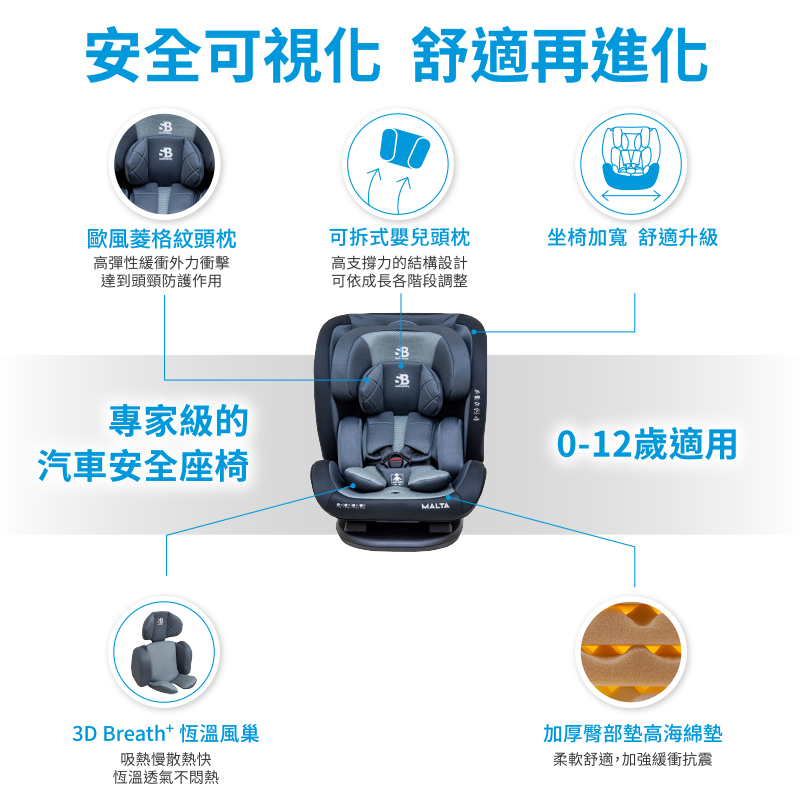 【適德寶SafetyBaby】Malta 0-12歲全年齡雙向汽車安全座椅-三色可選